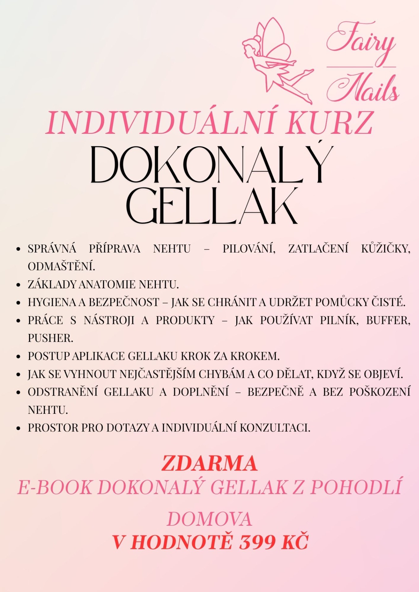 Chceš si dělat gellak doma tak, aby vypadal dobře a vydržel, ale nechceš kupovat další produkty, které možná ani nevyužiješ? Tento kurz je přesně pro tebe. Během 6 hodin intenzivní praxe tě naučím celý postup aplikace gellaku krok za krokem – na mých profesionálních produktech, bez zbytečné teorie a zmatku. Kurz probíhá ve Vřesině u Ostravy, o víkendech, termín dle domluvy, v klidném prostředí a s individuálním přístupem.
